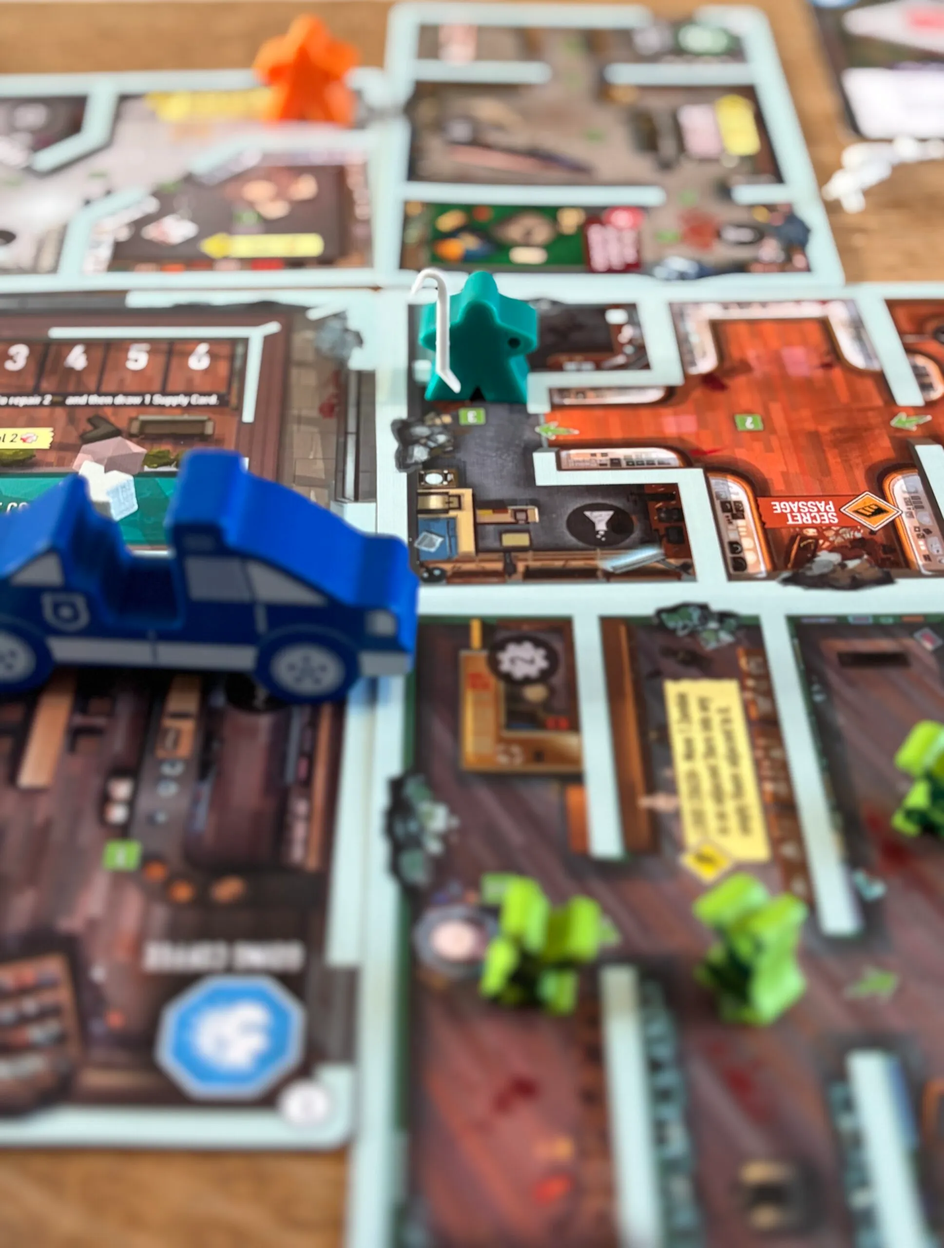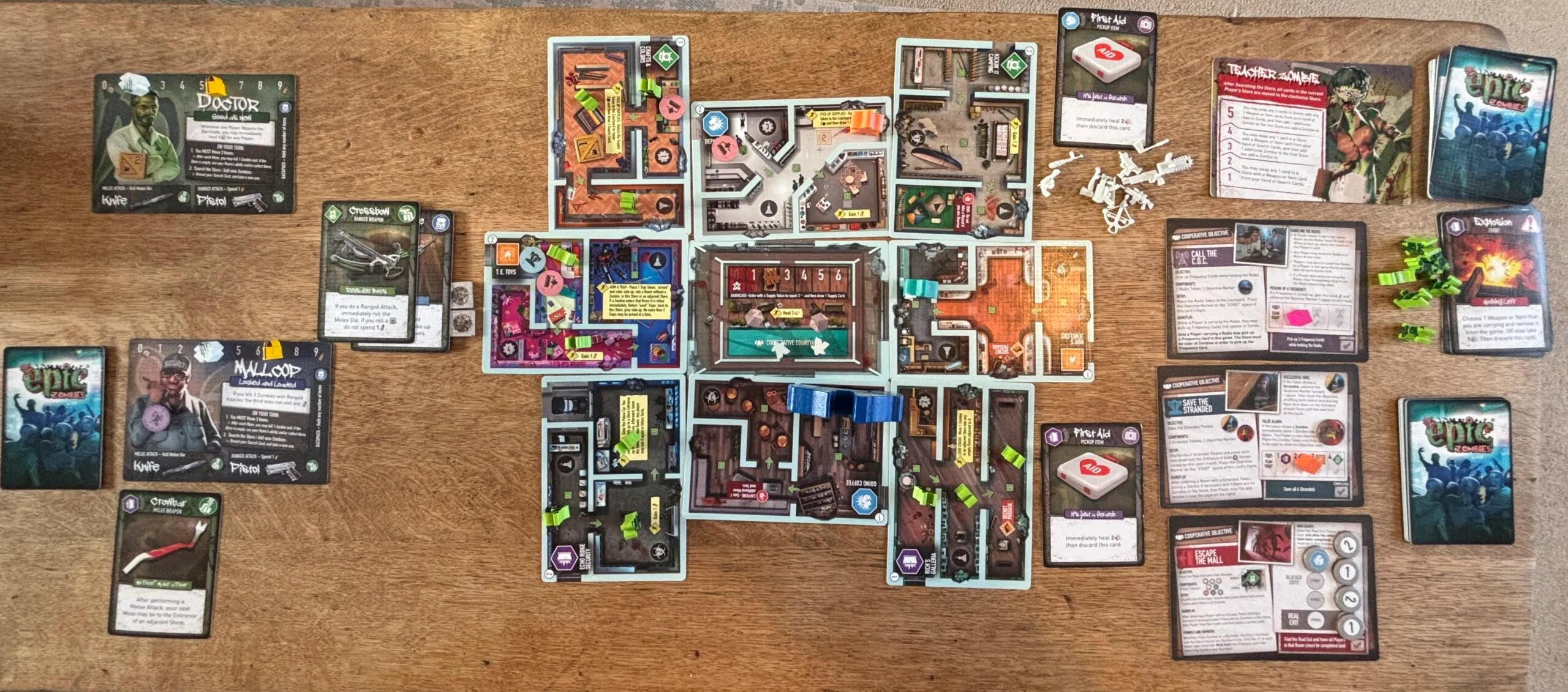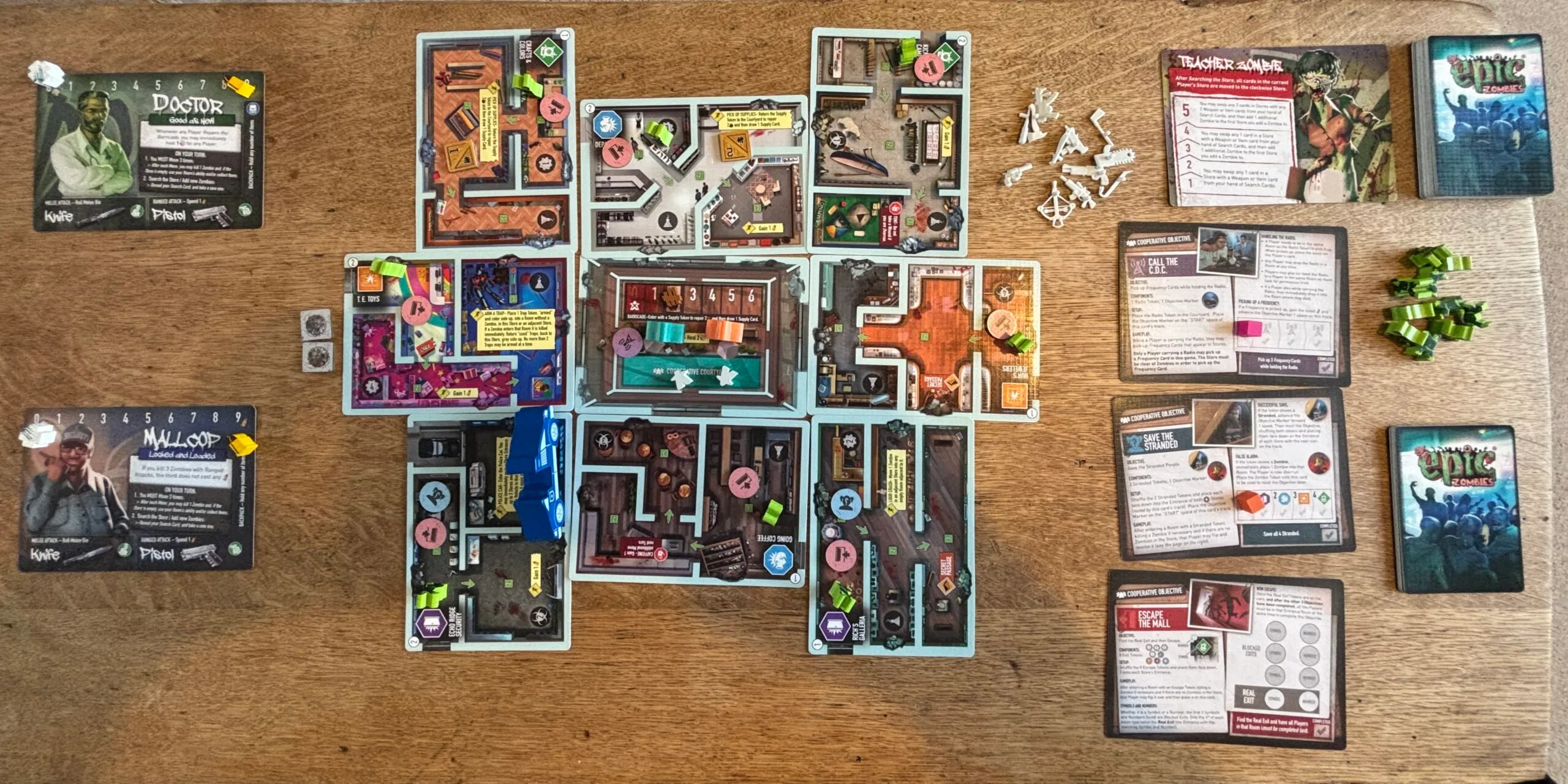 I did forget to use the Doctor’s ability to heal when I repaired the barricade and that would probably saved his life when he took two wounds trying to clear out the last zombie in the Orange 1 room that was the real exit to Escape the Mall